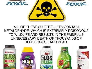 Lawn treatments, pesticides, insecticides and slug pellets all prevent you from having a Hedgehog friendly garden. Poisons and chemicals are toxic to Hedgehogs and can be fatal. In addition to this, the treatments reduce the numbers of creepy crawlies that are available for Hedgehogs to eat.