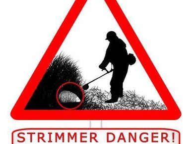 Hedgehogs will not run away from the sound of a strimmer. Check ALL areas before strimming and move hedgehogs to a safe place (wearing gloves). Moving a family is more complicated and you should contact your local rescue for advice and support.